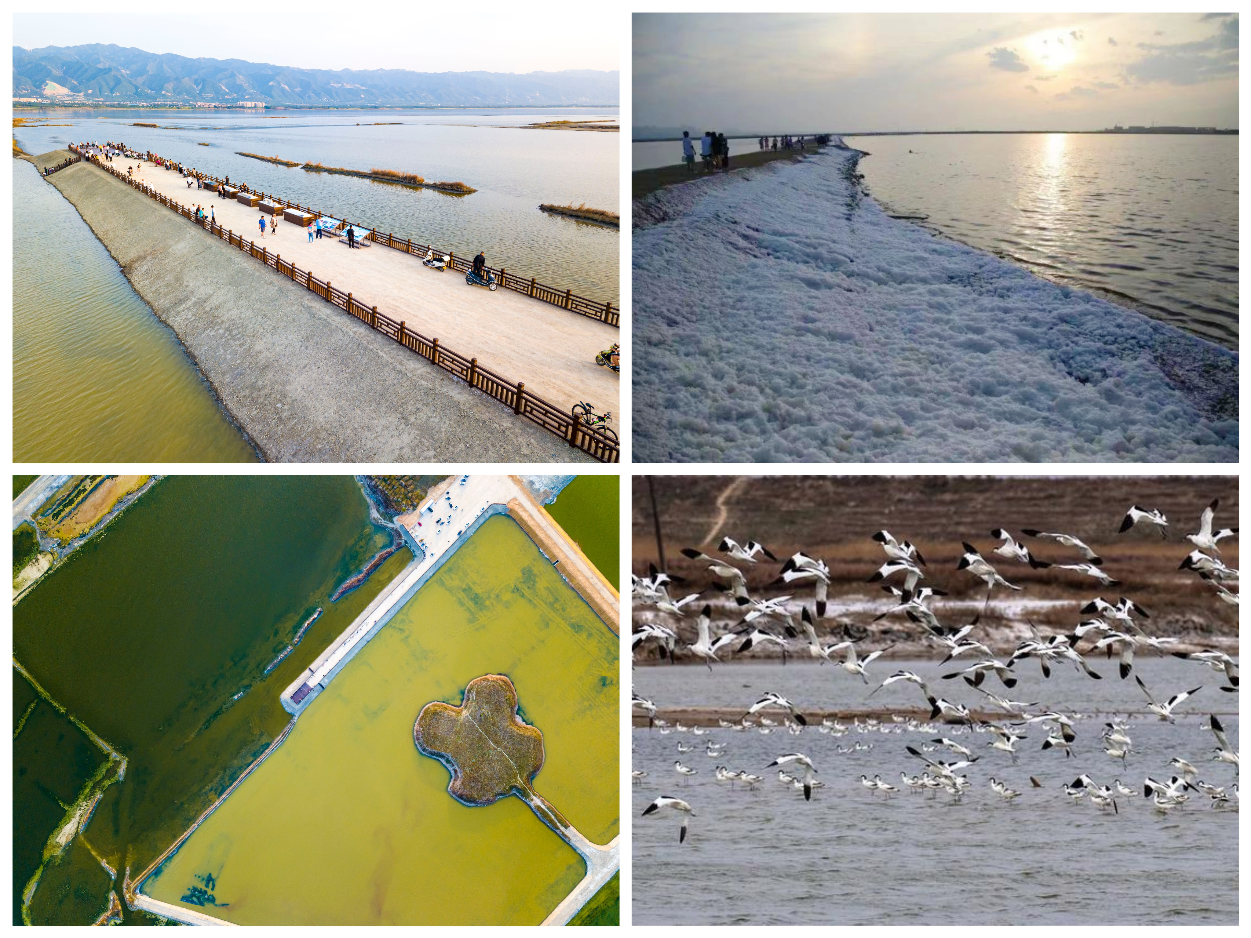 2021年以來,由我公司負(fù)責(zé)實施的鹽湖堤埝除險加固及生態(tài)修復(fù)工程,經(jīng)過對原運硝路改造、堤埝平整加固、畦田清淤、江道疏浚,完成堤埝整治98千米、環(huán)湖綠道13.14千米、雜草清理41萬平方米、草皮護坡10萬平方米、淤面清理14萬立方米;實施北坡綠化、岸帶綠化、荒灘綠化等工程,最大限度地保留了鹽湖的自然風(fēng)貌,厚植了鹽湖的生態(tài)底色。“退鹽還湖”兩年多來,鹽湖已經(jīng)逐步從礦區(qū)、工業(yè)區(qū)變?yōu)樯鷳B(tài)保護區(qū)、旅游打卡地,為鹽湖長遠(yuǎn)可持續(xù)發(fā)展預(yù)留了資源空間。