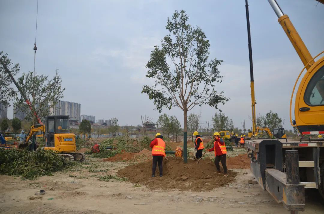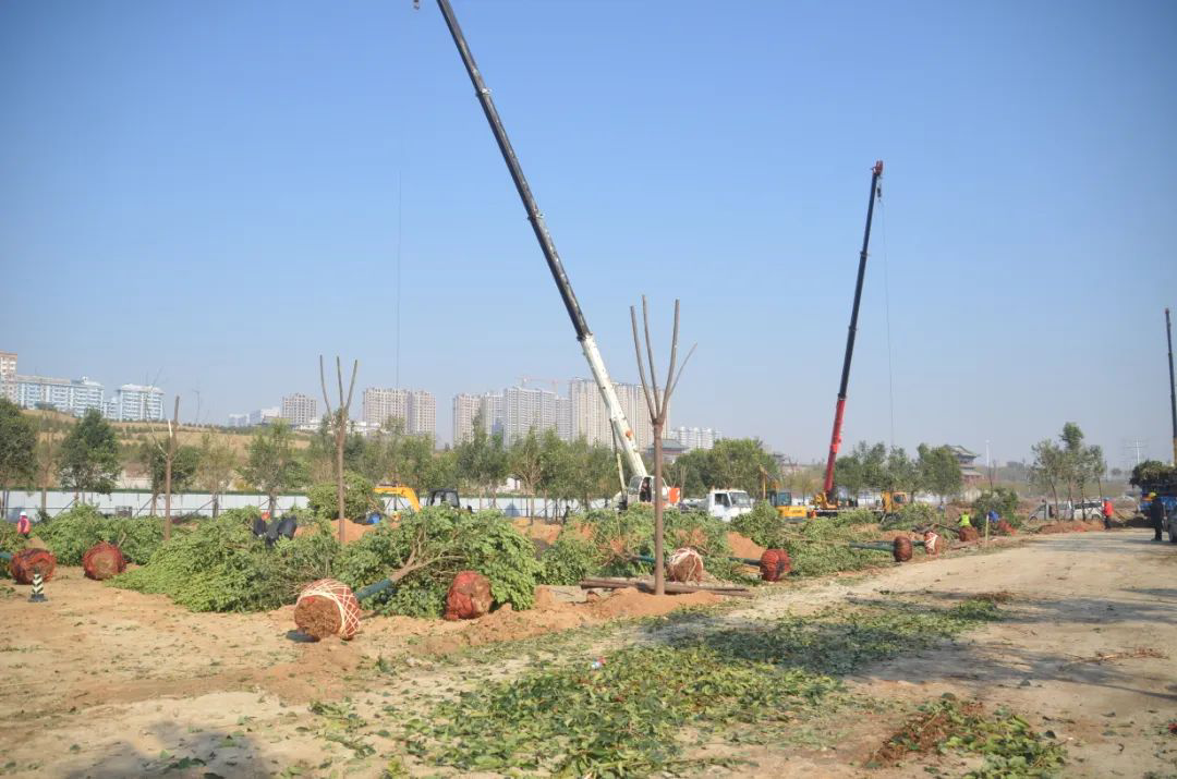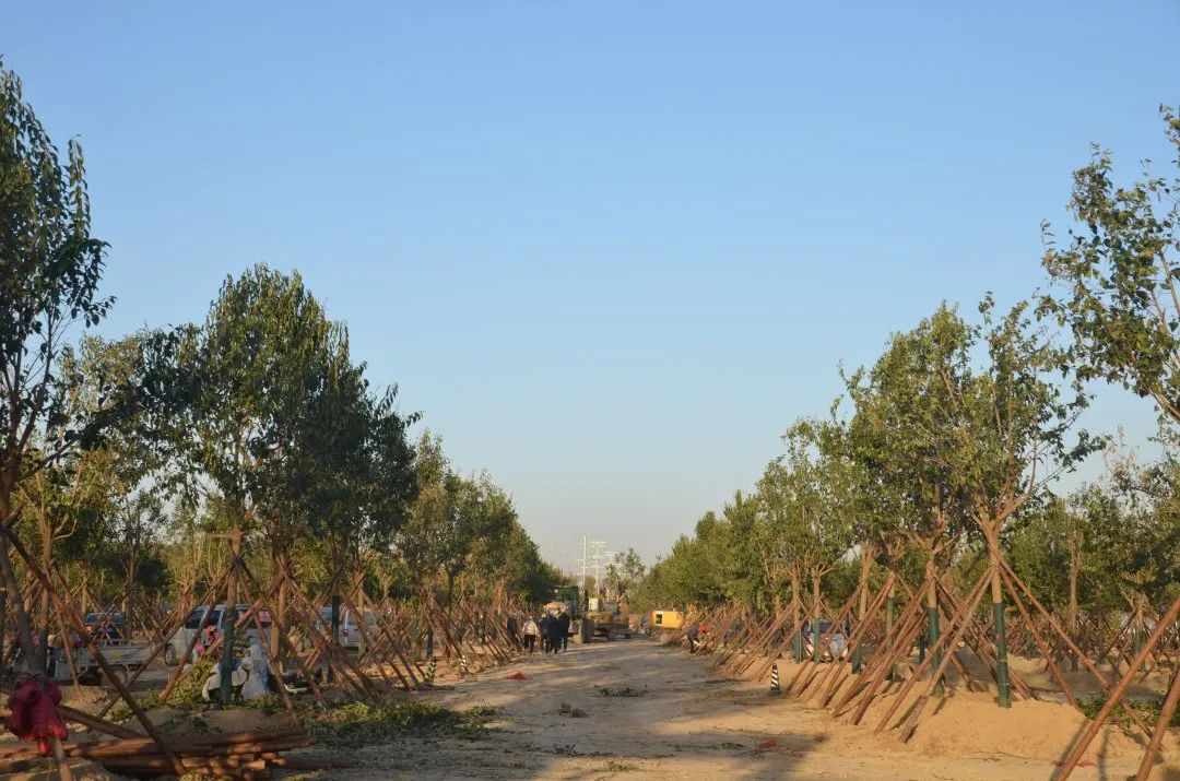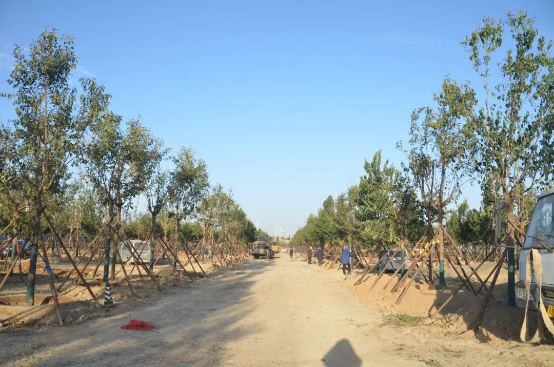施工現(xiàn)場,大型機(jī)械集中作業(yè),挖掘機(jī)、裝載機(jī)、吊裝機(jī)和運(yùn)輸車來回穿梭,九十余名工人辛勤勞作,相互配合,干勁十足,按設(shè)計規(guī)定放線挖坑、吊裝樹木、培土壓實(shí),防護(hù)林建設(shè)有序進(jìn)行。栽植過程中,多次討論研究,結(jié)合鹽池生態(tài)環(huán)境,統(tǒng)籌考慮,因地制宜選擇當(dāng)?shù)卦灾矘浞N,目前已種植國槐、榆樹、大葉女貞、紅葉石楠、大葉黃楊、金森女貞、麥冬等各類喬灌木草種共計700余株,綠化種植面積2萬多平米,綠化建設(shè)將進(jìn)一步對鹽湖北側(cè)岸帶生態(tài)系統(tǒng)起到很好的防護(hù)作用。