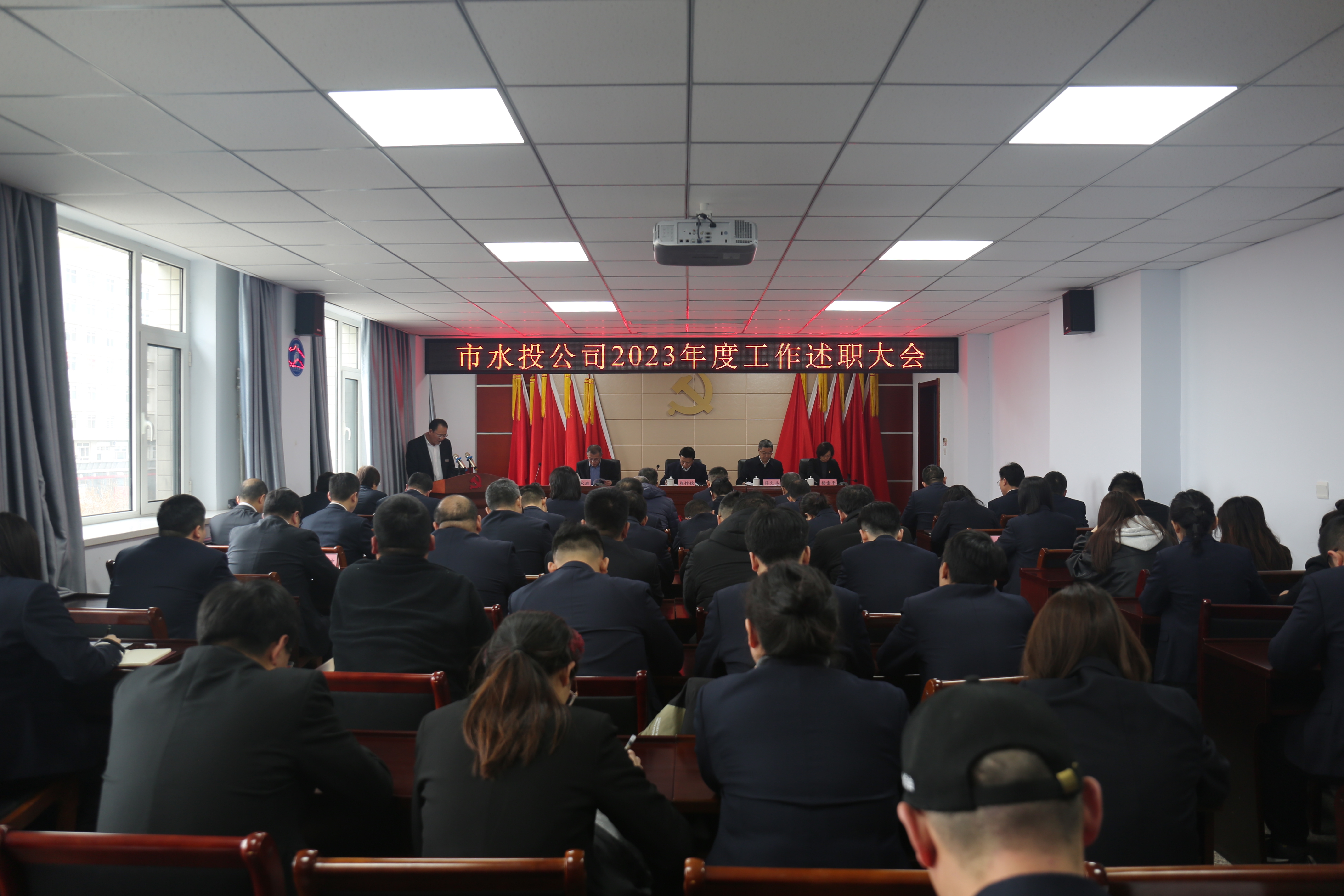 沉淀過往,迎接新光。為全面總結2023年度工作,分析研判當前工作形勢,科學合理安排2024年工作。2月23日,公司召開2023年度述職大會。公司黨委班子、子公司班子成員及機關全體干部職工共計60余人參加會議??偨?jīng)理薛文兵主持會議。