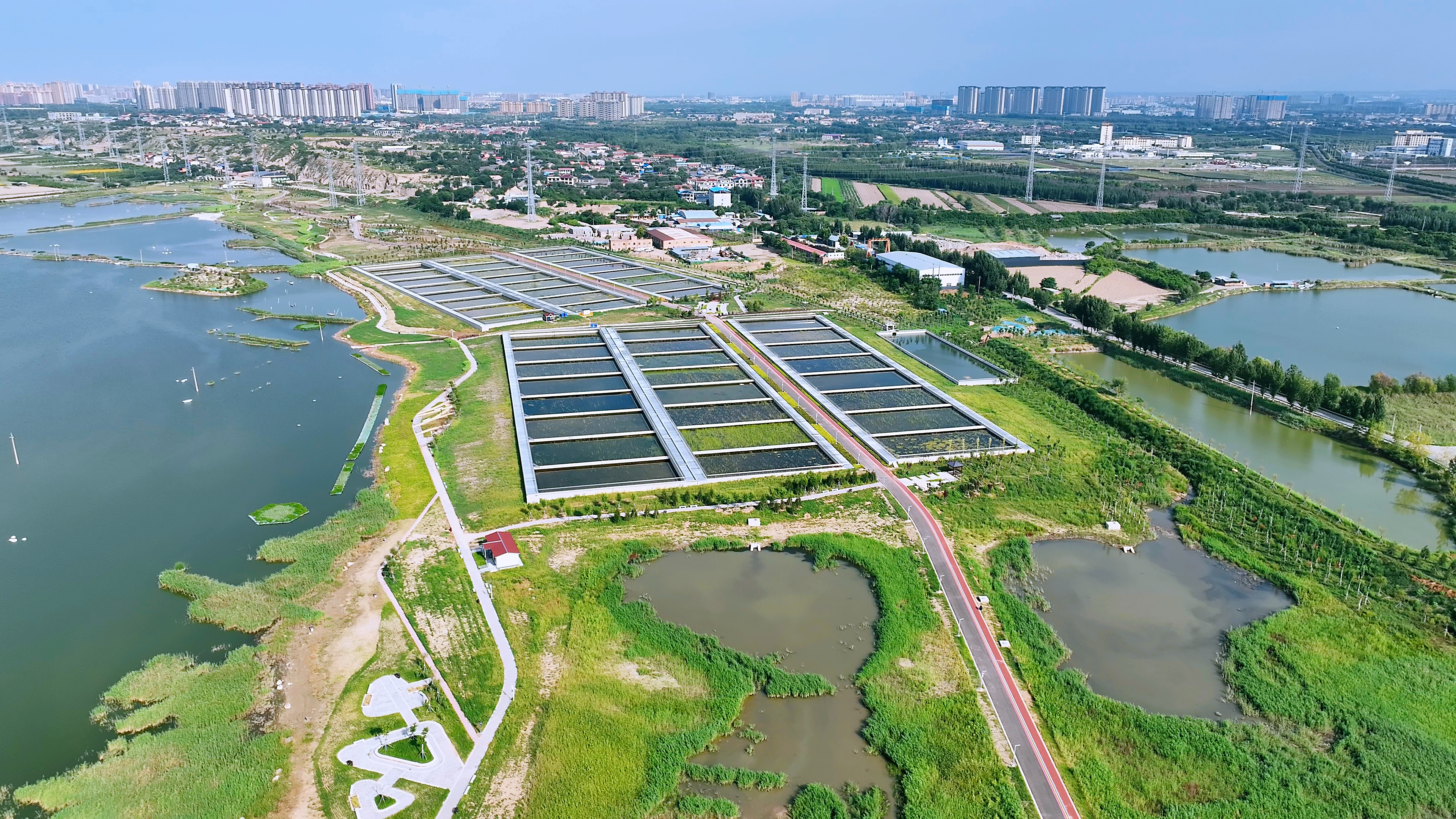 通過建設潛流濕地與表流濕地,以及生態(tài)浮島,工程強化了生態(tài)系統(tǒng)的自我修復能力,促進了生物多樣性,同時通過植物吸收污染物,實現了生態(tài)友好的水質凈化。工程中打造了14萬平方米的潛流濕地和表流濕地,這些濕地不僅美化了環(huán)境,還提高了水體的自凈能力,有助于維護生態(tài)平衡;利用環(huán)湖路鋪設和生態(tài)緩沖帶,鋪設了11公里的環(huán)湖路,既方便了游客的游覽,也增強了鴨子池周邊的交通連通性;在鴨子池周邊設計生態(tài)緩沖帶,采用自然景觀和植被過濾,減少面源污染,保護水質。同時,通過雨水收集、中水回用和生態(tài)補水等技術,構建閉合的水資源循環(huán)利用體系,減少對外部水資源的依賴,提高了水資源的循環(huán)利用率。